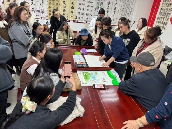 开幕式结束后,同步举办了国家艺术基金项目《二十四节气:黄河流域农民画数字艺术展》座谈会和当代新年画(农民画)创作解析与现场教学指导活动。来自阿克苏地区的美术界代表们围绕根植民间,解析二十四节气在农民画中的艺术符号;探讨数字技术如何为农民画创作带来新的活力;研究如何用当代的传播语言,讲好农民画的民间故事;探索农民画元素转化为文创IP的可行路径;构建数字时代下,创作者、技术与观众和谐共生的艺术生态等议题展开深入交流,为项目的后续实施凝聚共识、拓展思路。
