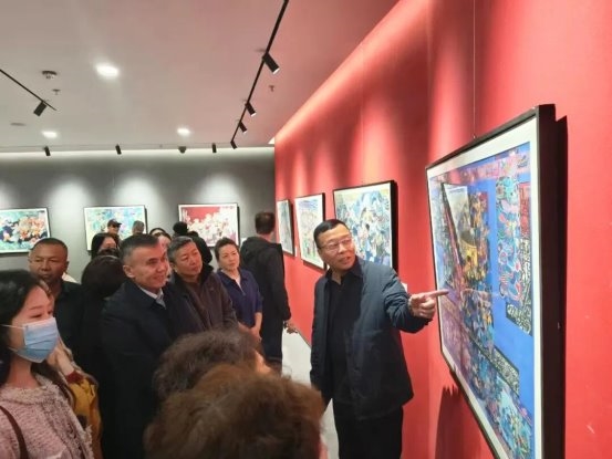 青岛西海岸新区美术馆副研究馆员、馆长田胜表示:农民画艺术就是以人民的视角,用人民的笔触,展现人民的生活,歌颂人民的伟大。我们期待以此次展览为契机,通过农民画这一群众喜闻乐见的艺术形式,搭建起黄河流域与新疆地区文化交流的桥梁。让黄河文化在天山脚下绽放异彩,为促进民族文化交流互鉴贡献力量。